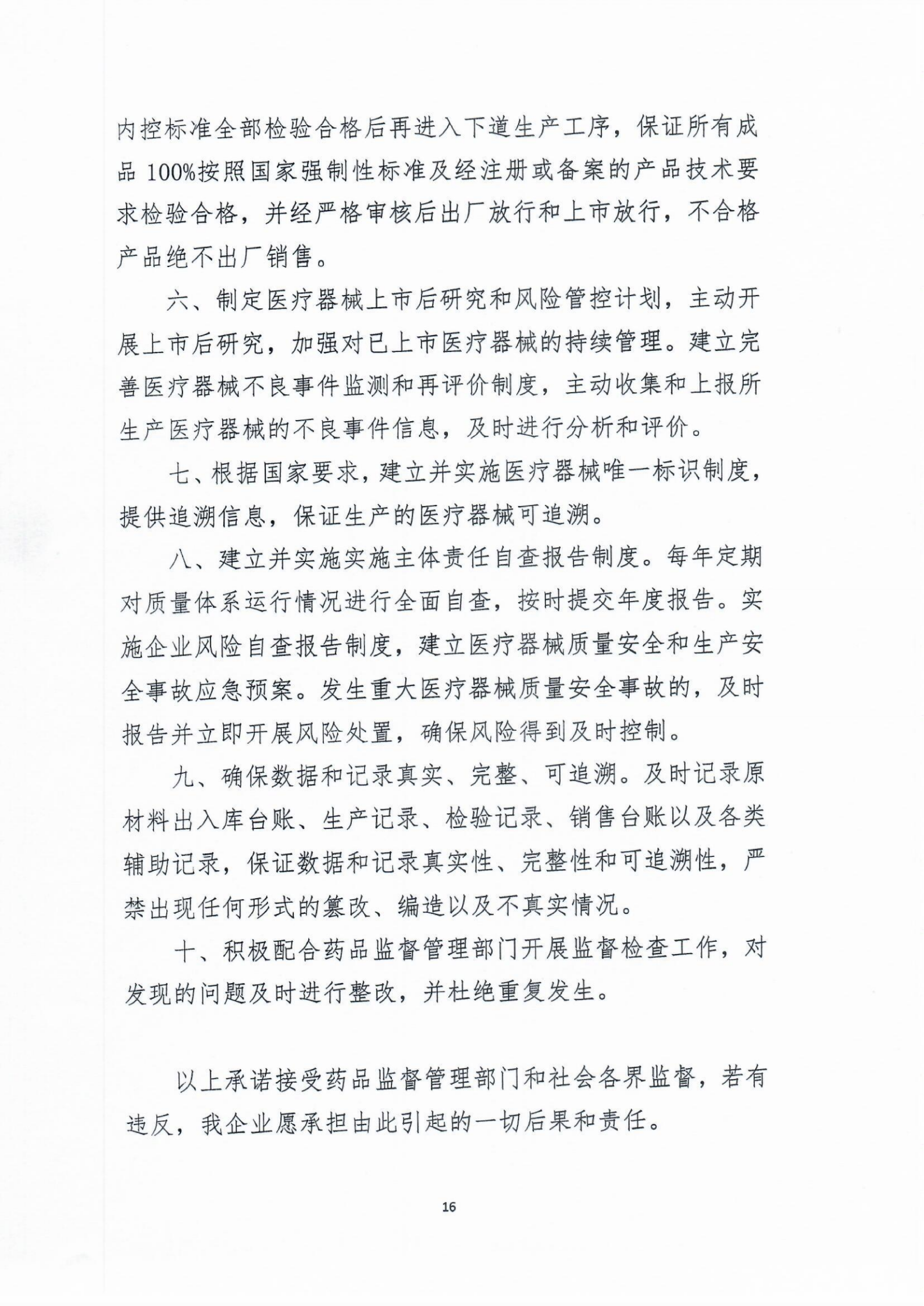 醫(yī)療器械質量安全主體責任承諾書