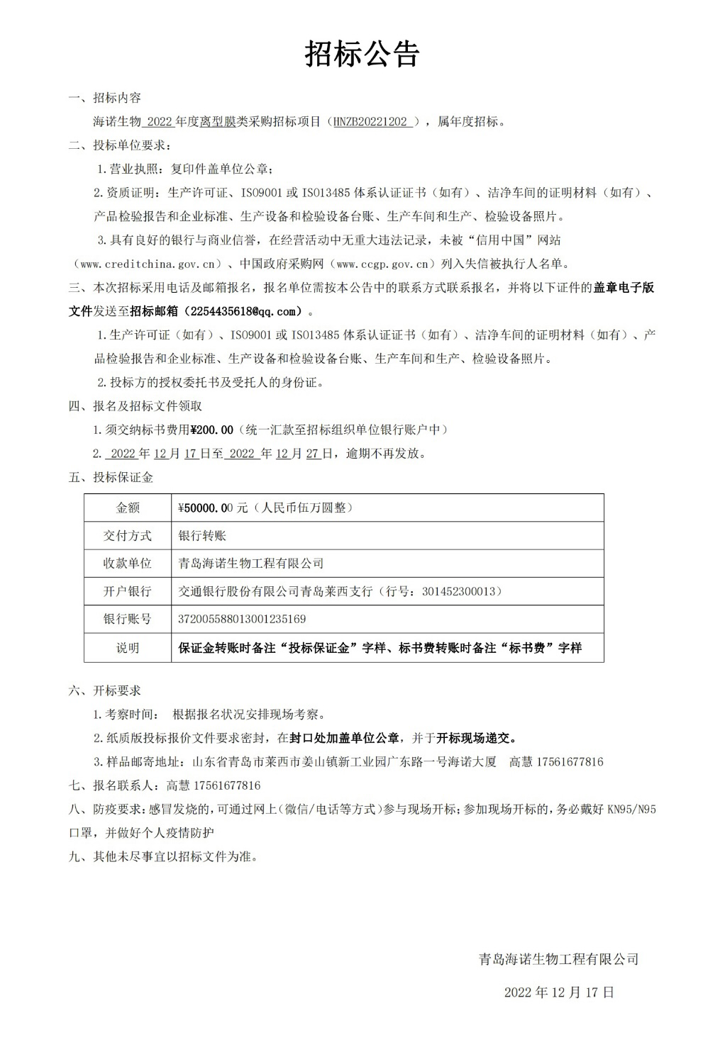 海諾生物2022年度離型膜類采購招標(biāo)項目現(xiàn)已正式開始,屆時我們將秉承公正、公平、公開、透明的招標(biāo)原則,期待優(yōu)秀供應(yīng)商的廣泛參與。具體招標(biāo)細(xì)節(jié)如下: