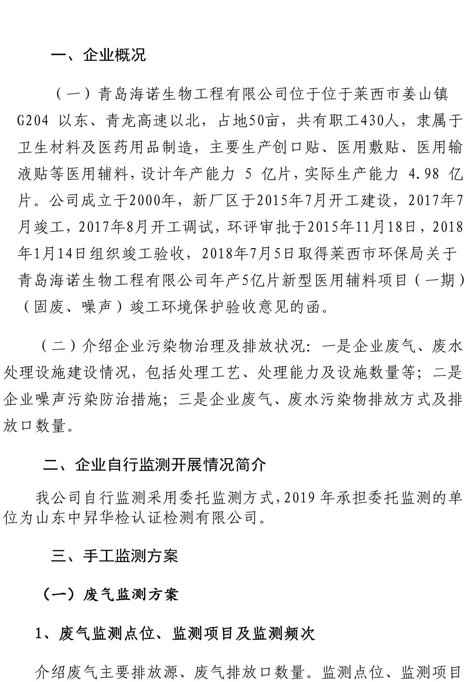 青島海諾生物工程有限公司自行檢測報告